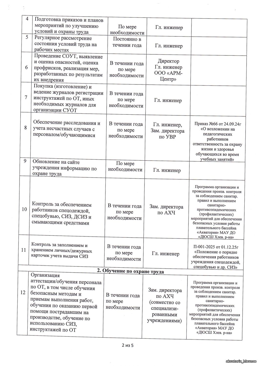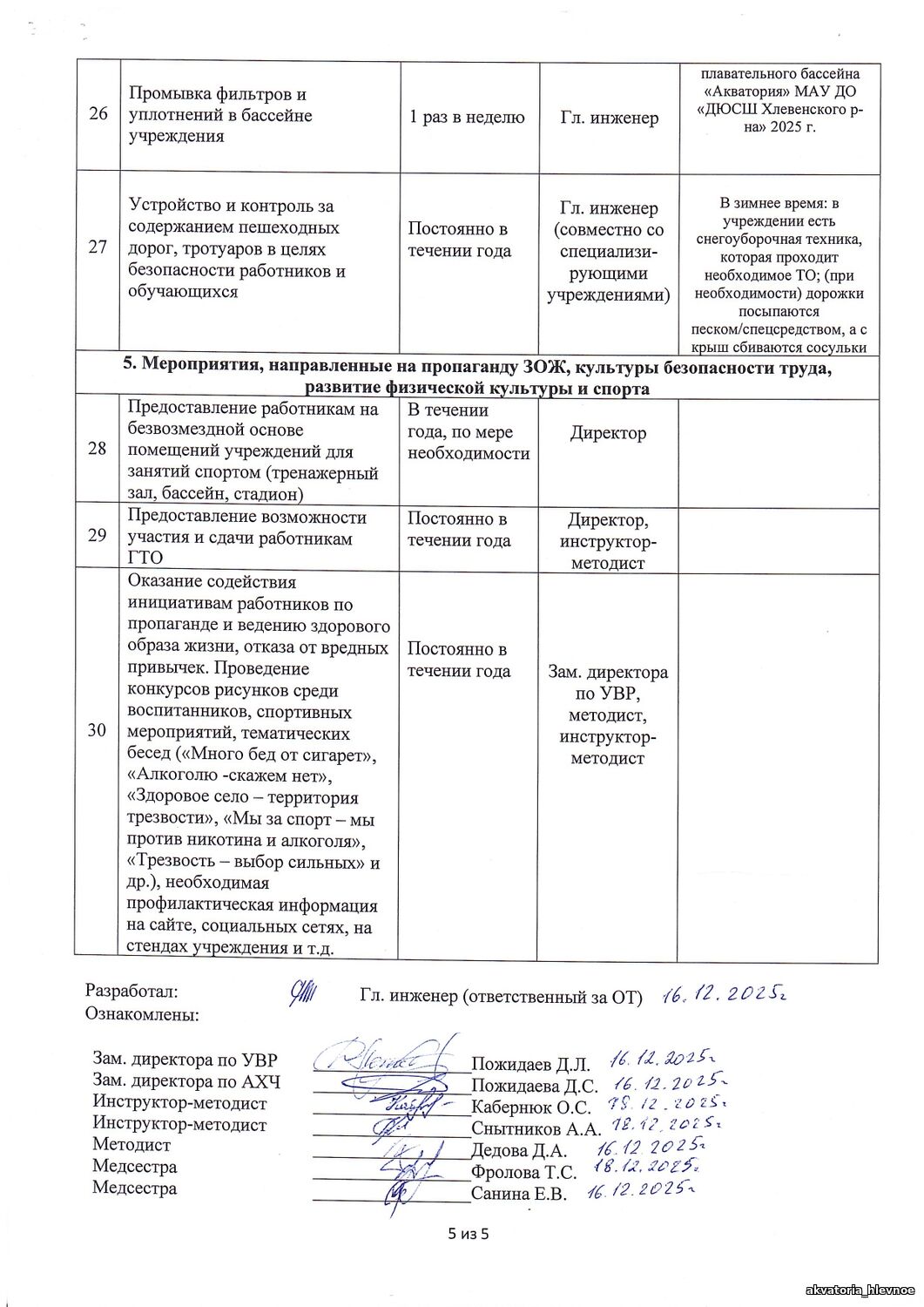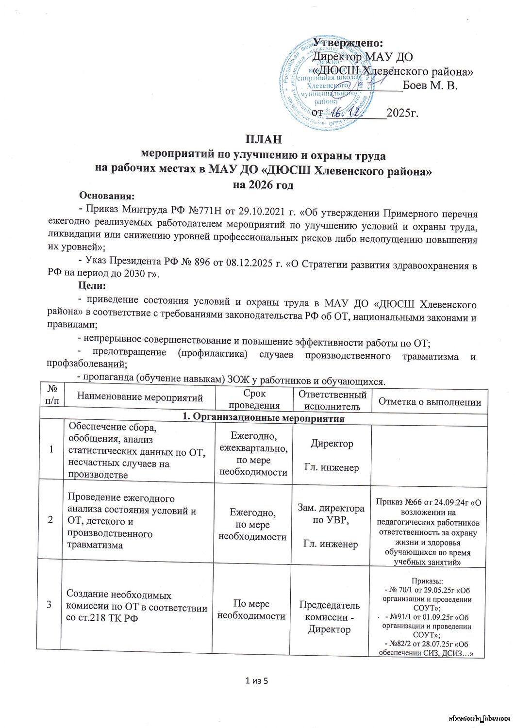 План мероприятий по улучшению и охране труда на рабочих местах на 2026 г