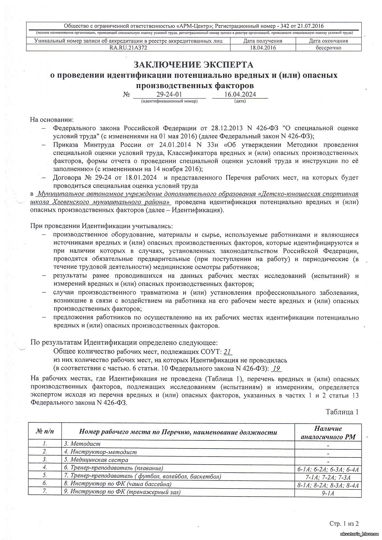 ОТЧЁТ о результатах самообследования МАУ ДО "ДЮСШ Хлевенского района"
