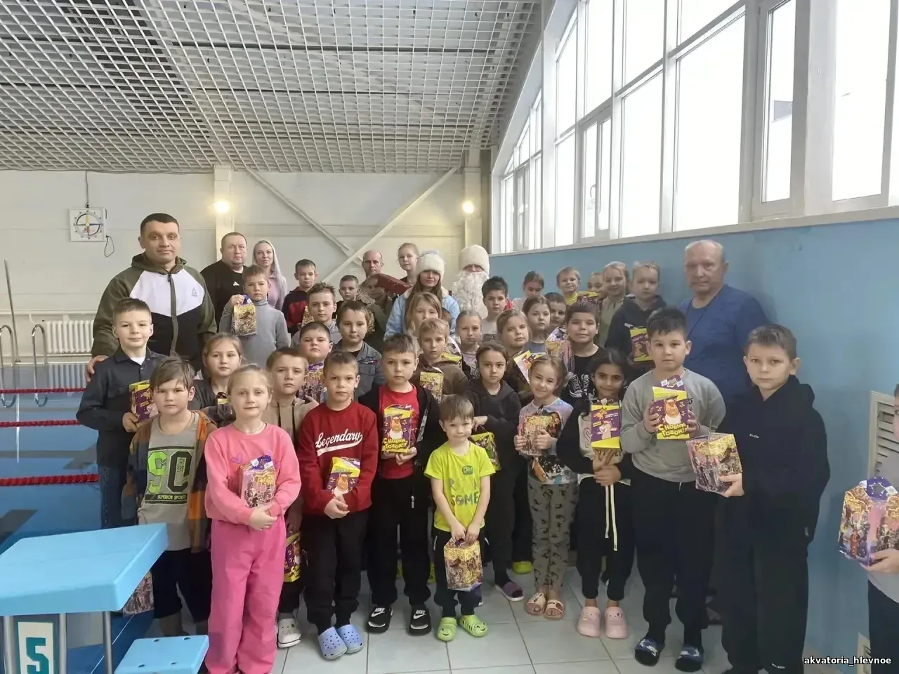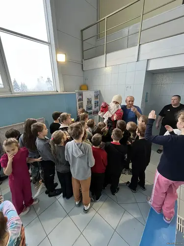 🎄🏊♀️Началось все с волшебства в уютном фойе. Там ребят ждала мини-сценка, полная смеха, загадок и, конечно же, любимых новогодних персонажей. Дед Мороз и Снегурочка провели для детей веселые игры, рассказали интересные истории и поздравили всех с наступающим Новым годом. Атмосфера была наполнена предвкушением чуда и радостным детским смехом.